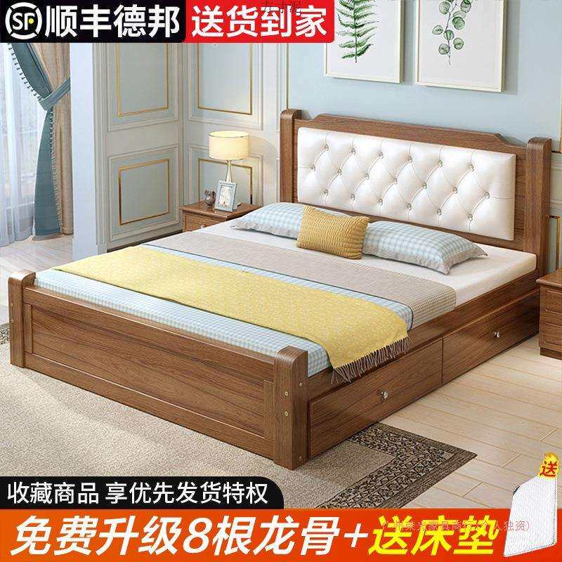实木床现代简约双人床经济型出租房1.8主卧单人大床收纳轻奢欧式
