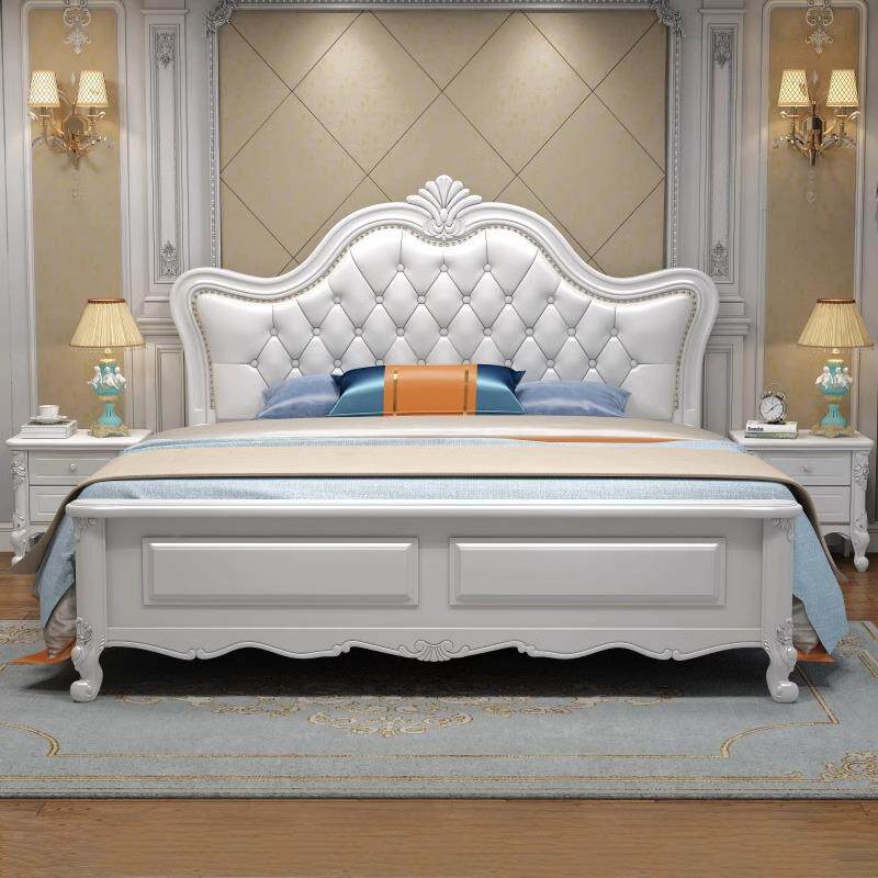 欧式白色实木床1.8米双人床简约现代高箱雕花主卧公主床美式婚床