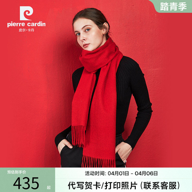 皮尔卡丹围巾女秋冬2026年新款羊毛红色喜庆保暖披肩生日礼物