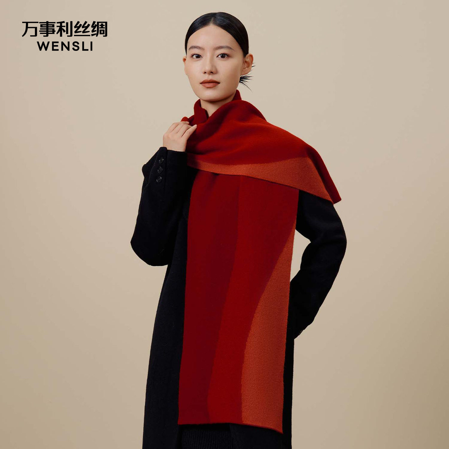 - 羊绒围巾大红
