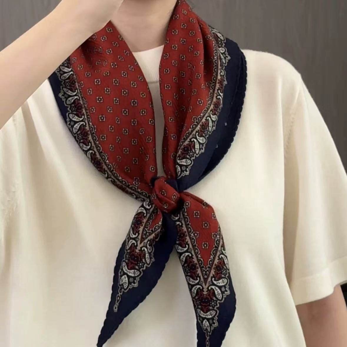 新款韩版【红色佩斯利】菱形巾女秋冬可系脖装饰领巾春秋气质丝巾