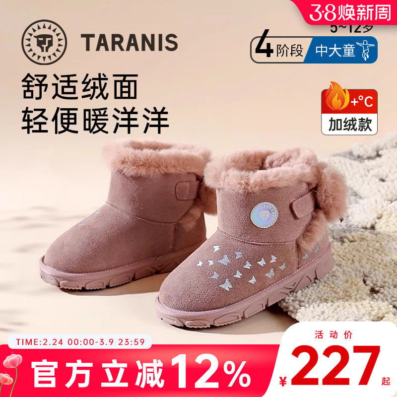 泰兰尼斯冬季新款女宝雪地靴软底加绒女童儿童鞋子保暖中大童棉靴
