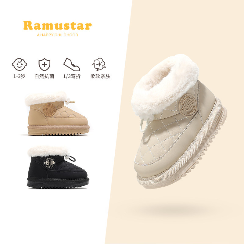 巴布豆童鞋儿童雪地靴2025新款冬季小童加绒加厚棉鞋女宝男童靴子