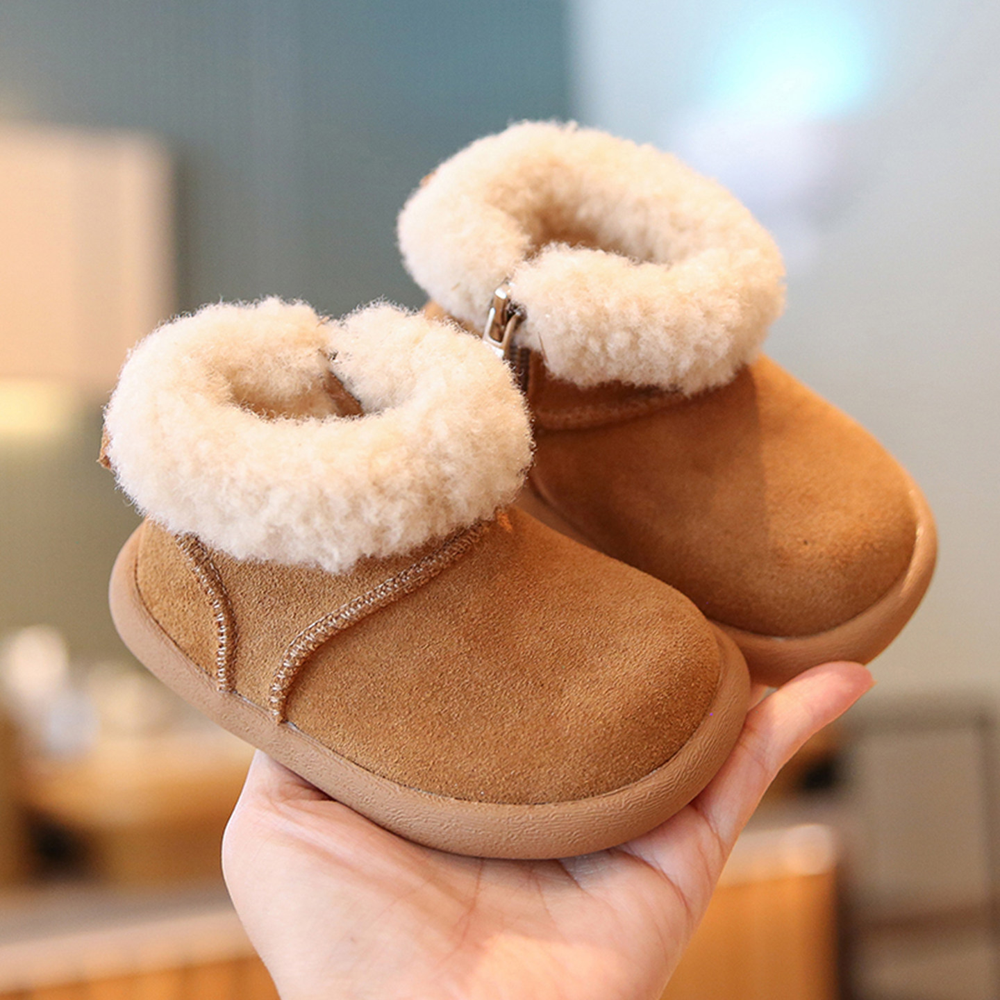 宝宝冬季棉鞋加绒加厚软底女宝学步鞋毛毛鞋婴幼儿鞋子男童雪地靴