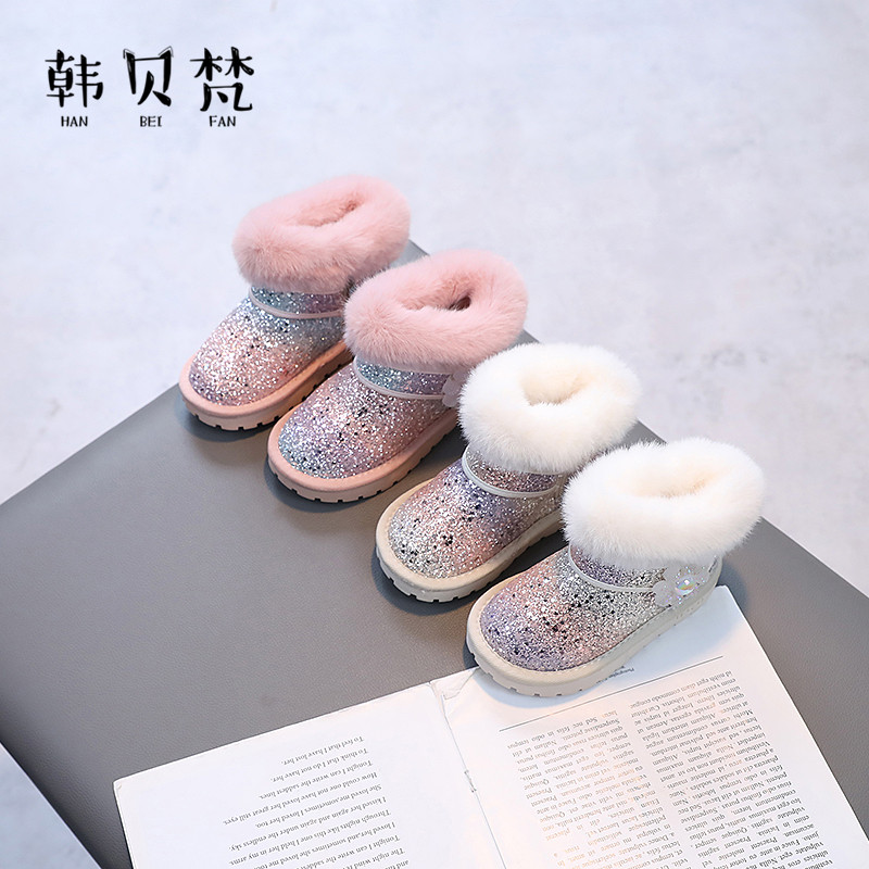 2025冬鞋女童靴子冬季棉靴水钻加厚保暖鞋棉鞋甜美2岁女宝雪地靴3
