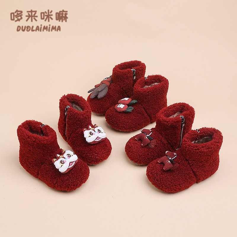 女童棉靴儿童红色马年毛毛靴女宝冬季鞋子过年洋气加厚卡通雪地靴
