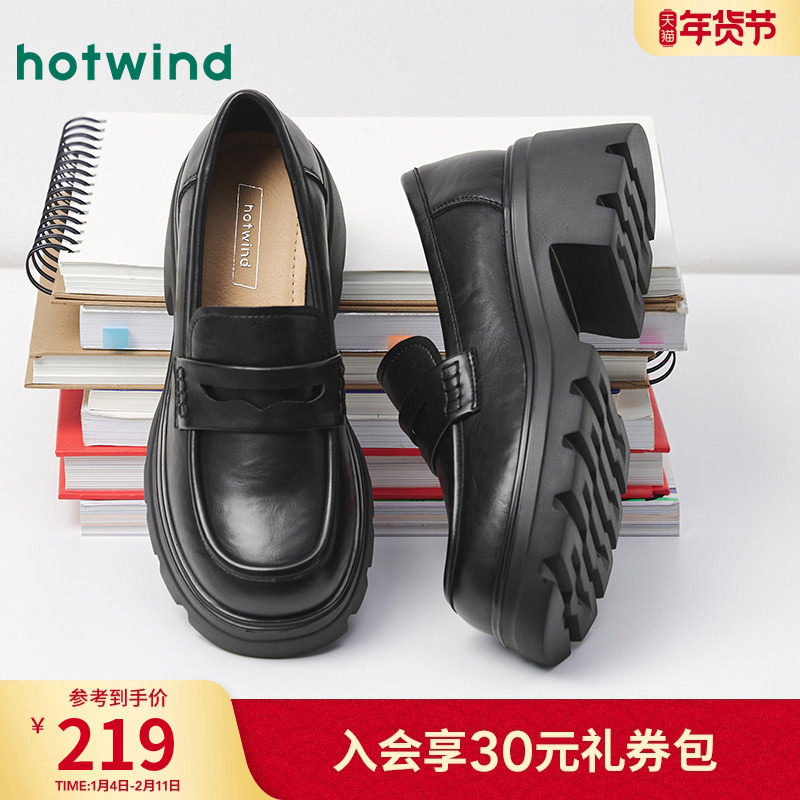 热风厚底乐福鞋女鞋2025年秋季新款女士百搭粗跟单鞋英伦风小皮鞋