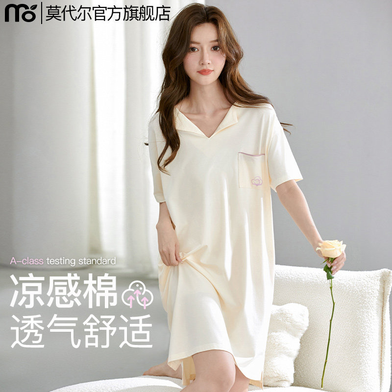 莫代尔睡裙女款夏季冰丝短袖睡衣连衣裙A类抑菌女士家居服2026新