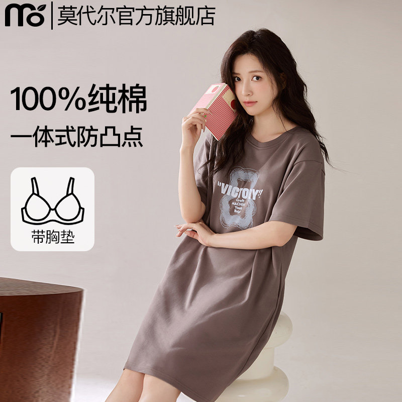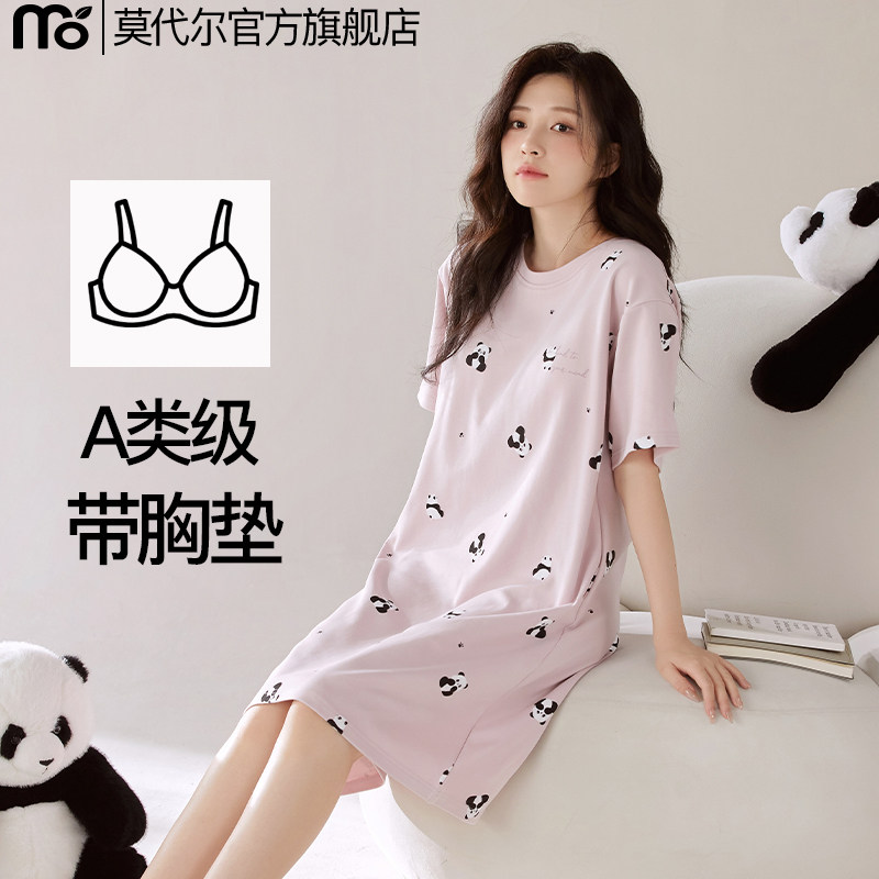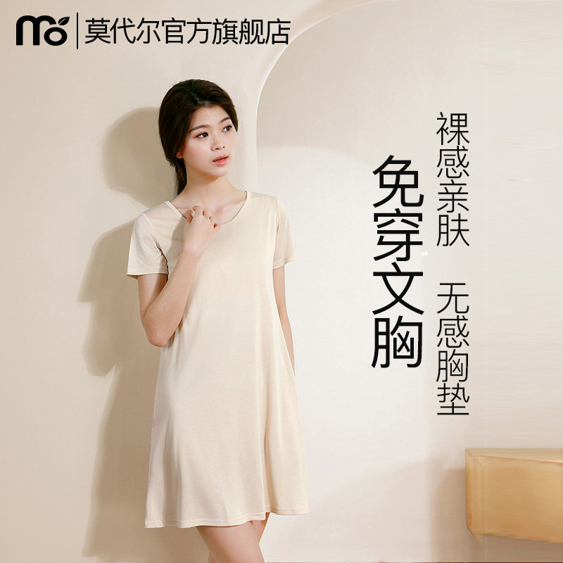 莫代尔睡裙女带胸垫夏季凉感短袖A类女士防凸睡衣家居服2026新款
