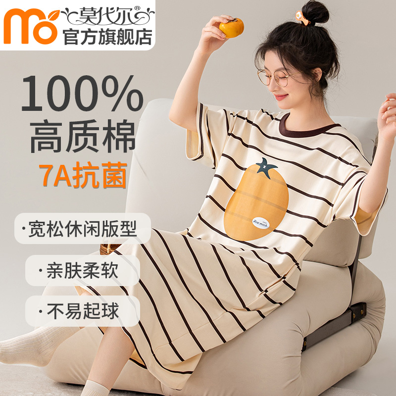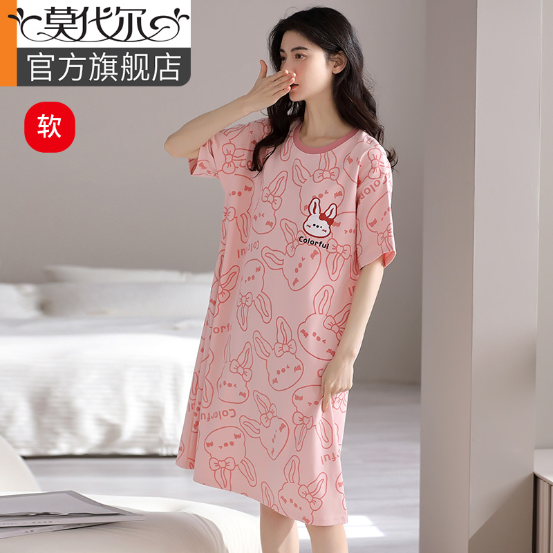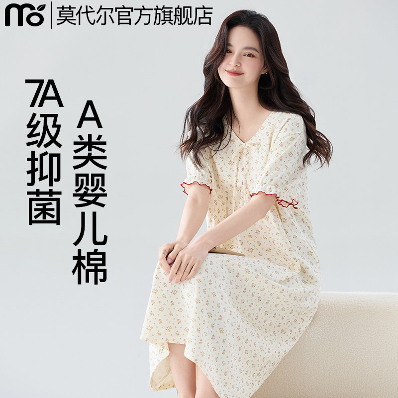 莫代尔7A抗菌短袖睡衣甜美纯棉睡裙女士夏2024新款薄款可爱风全棉