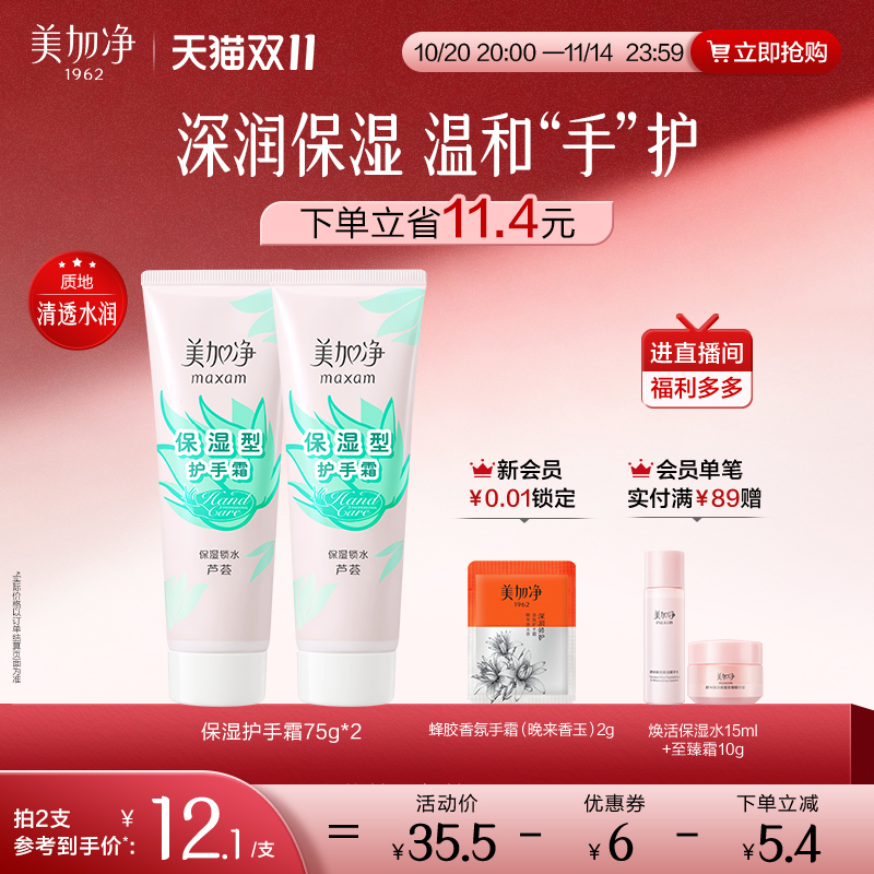 美加净芦荟保湿锁水护手霜2支温和柔润滋润手油改善干裂老牌国货