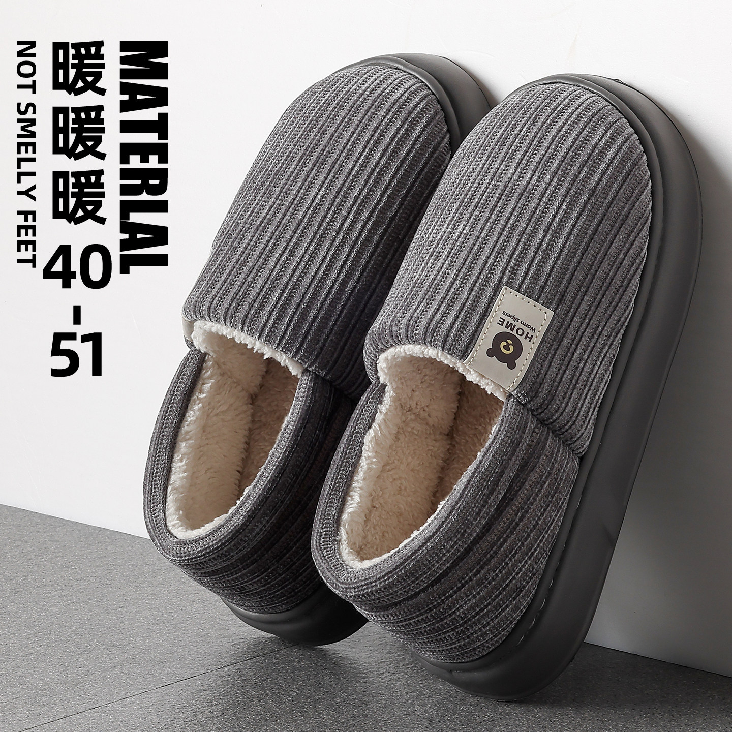棉拖鞋男士冬季2025新款室内家居大码包跟保暖加毛绒防滑厚底外穿