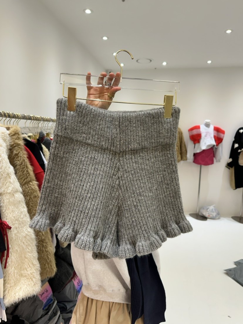 韩国东大门女装2024秋冬新款时尚百搭高腰松紧木耳边百搭针织短裤