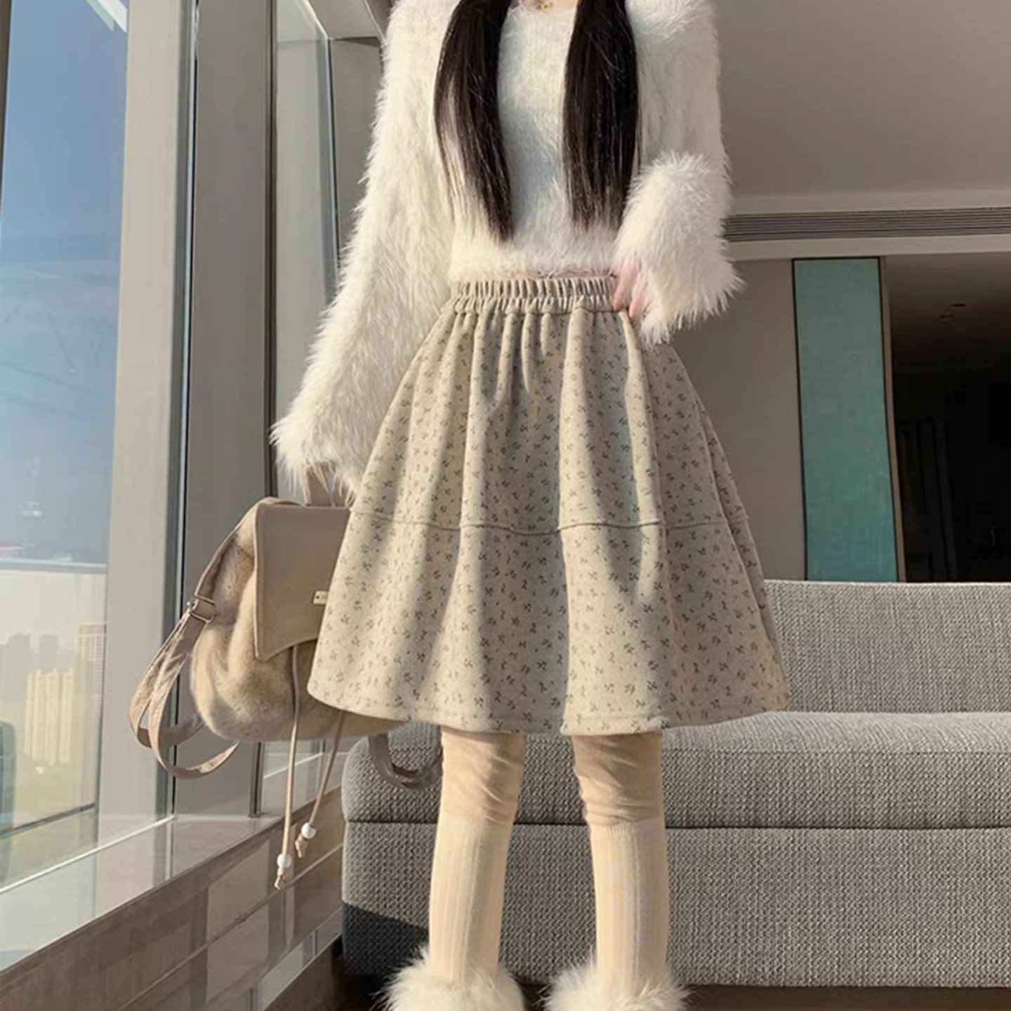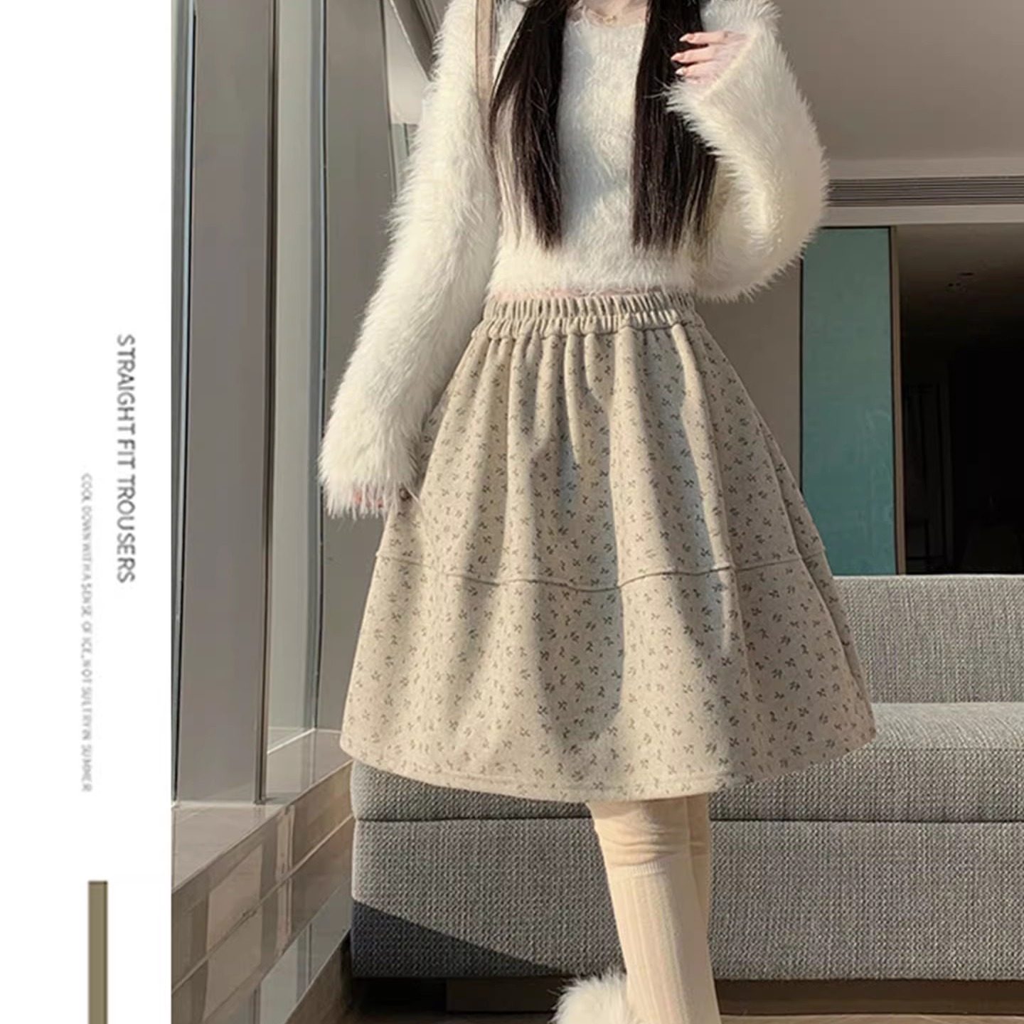 韩国东大门女装2025新款碎花毛呢半身裙女气质甜美a字裙伞裙短裙
