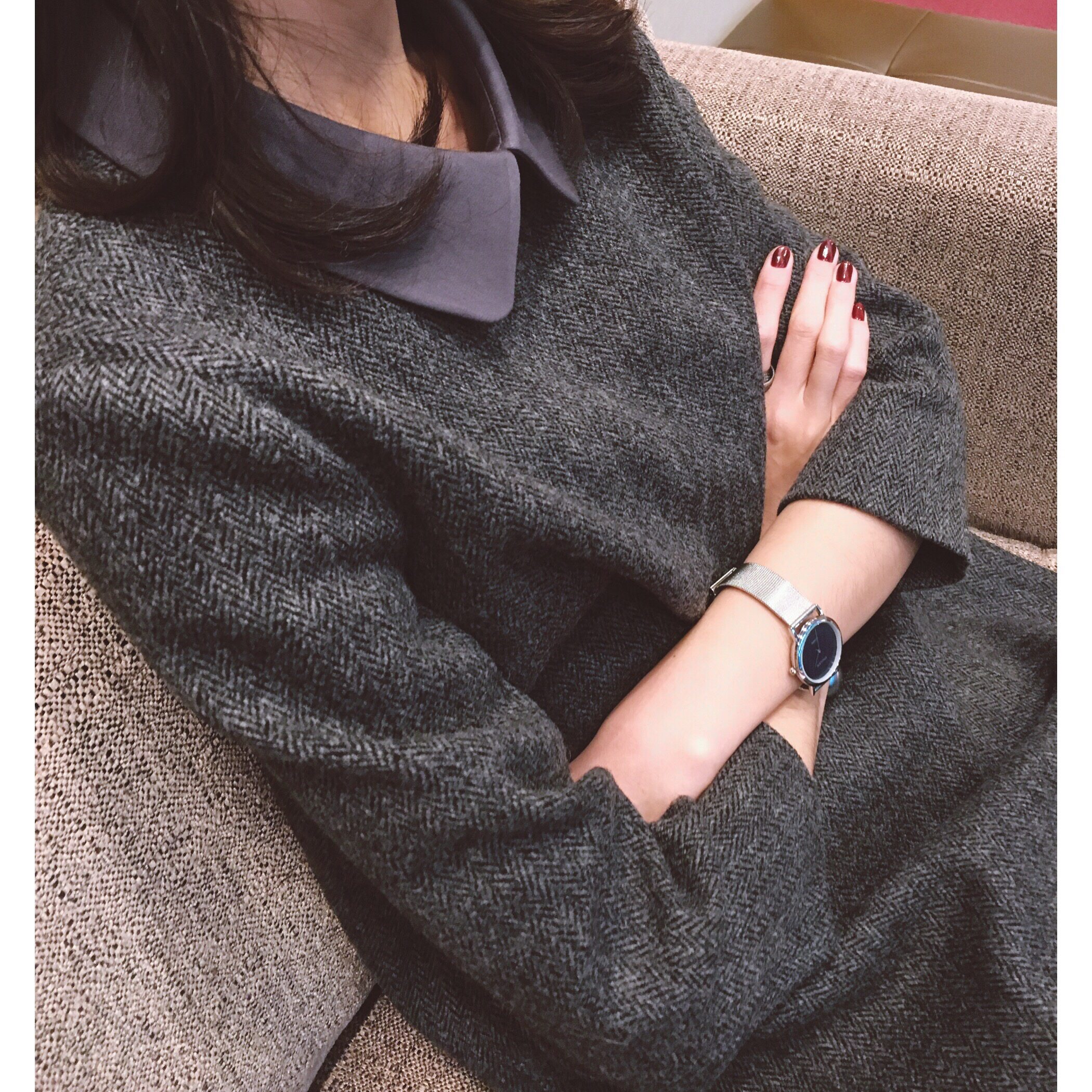 韩国东大门女装新款撞色polo领毛呢假两件连衣裙长袖宽松气质裙子