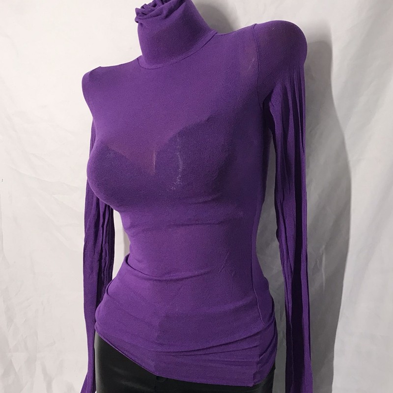 当天发 韩国东大门女装 薄薄好穿 葡萄紫色紧身气质高领打底衫T恤