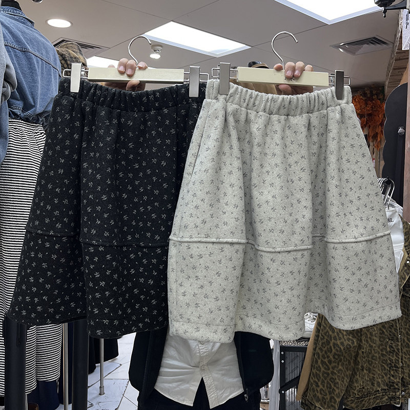 韩国东大门女装碎花毛呢半身裙韩系超好看的气质甜美a字裙伞裙子