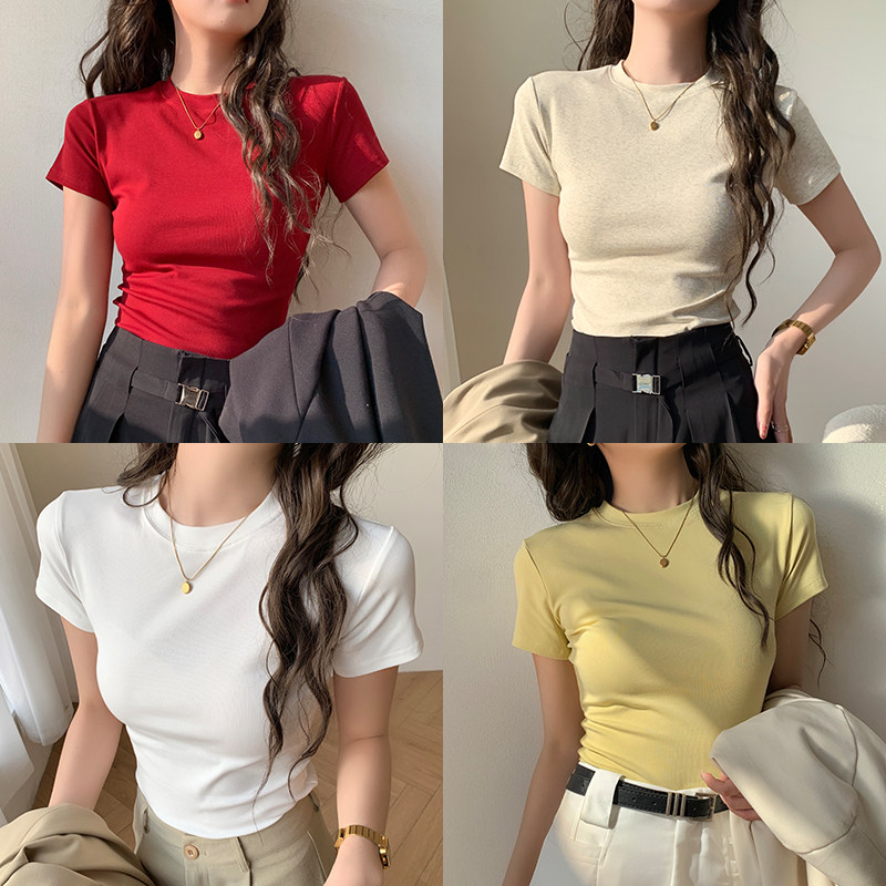 短袖t恤女白色紧身纯棉短款体恤夏季新款半袖修身内搭打底衫上衣