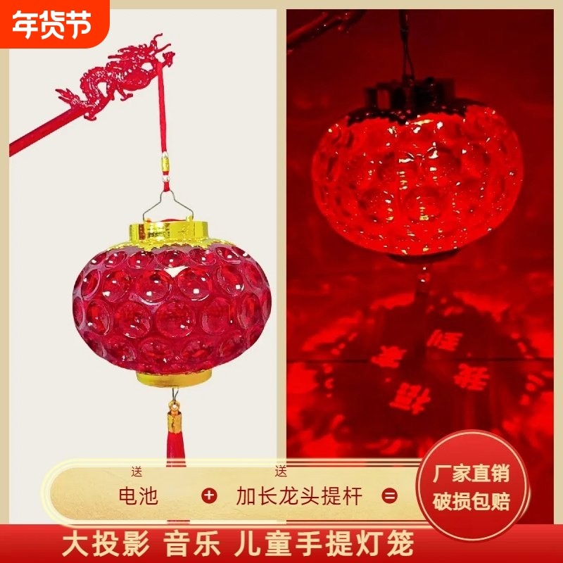 春节手提儿童灯笼玩具发光带音乐元宵节花灯水晶宫灯新年送礼装饰