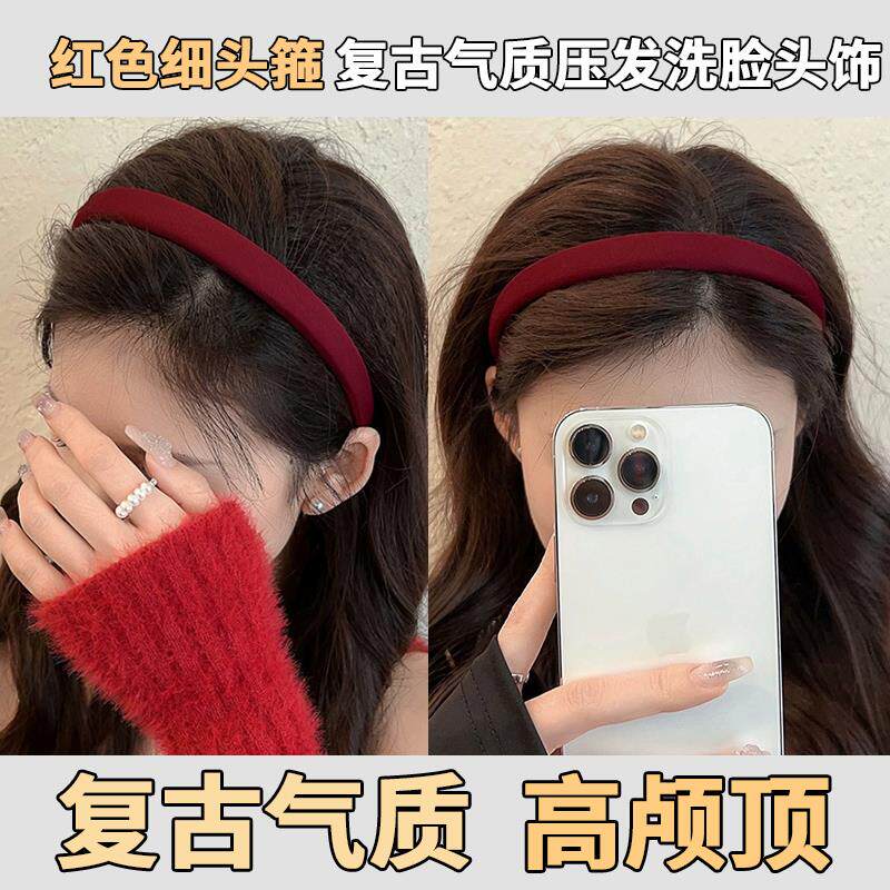 红色细发箍女复古压发洗脸头箍发捆发饰韩国网红高级感发卡头饰潮