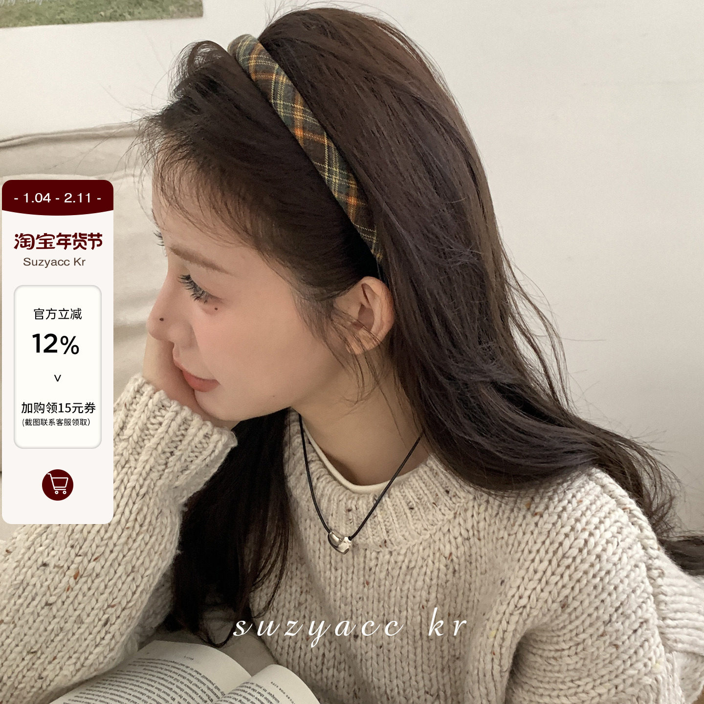suzyacc kr秋冬美拉德高级感毛呢格子细发箍女2025新款洗脸头箍