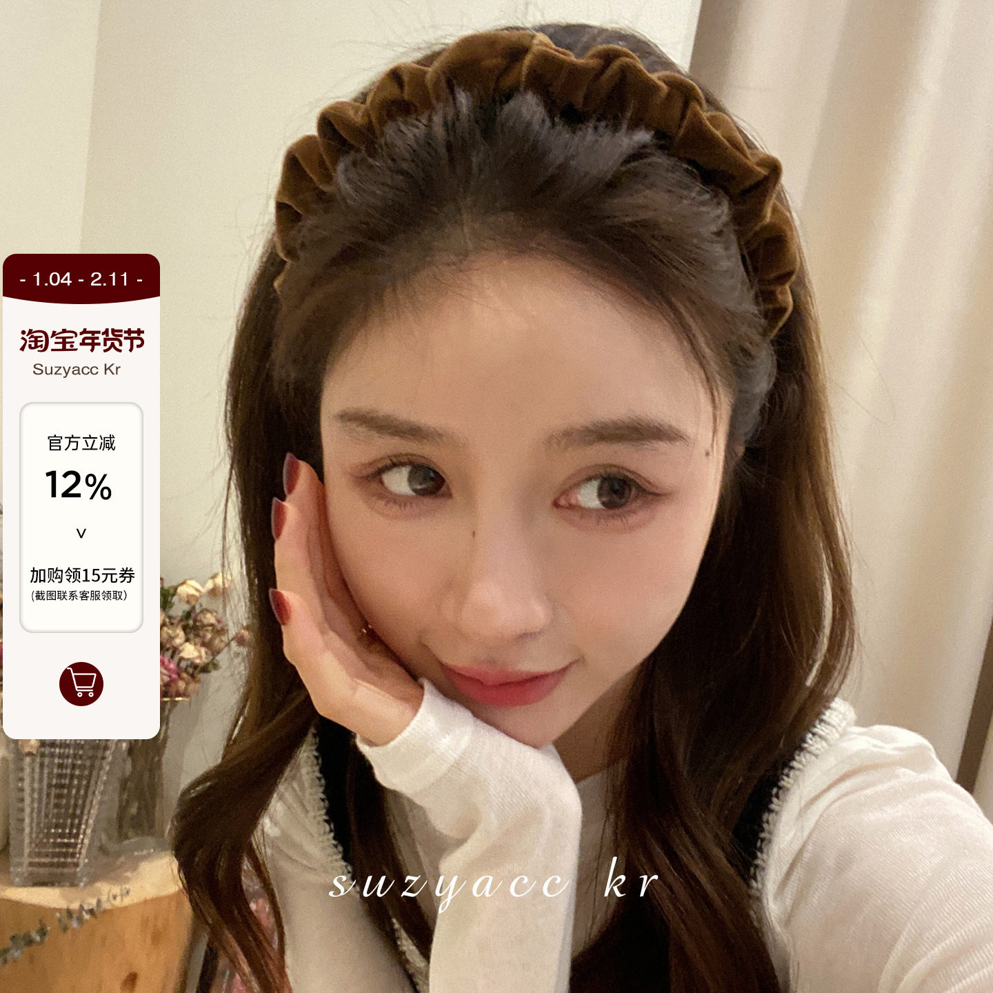 suzyacc kr秋冬法式复古丝绒褶皱细发箍2025年网红新款洗脸头箍女