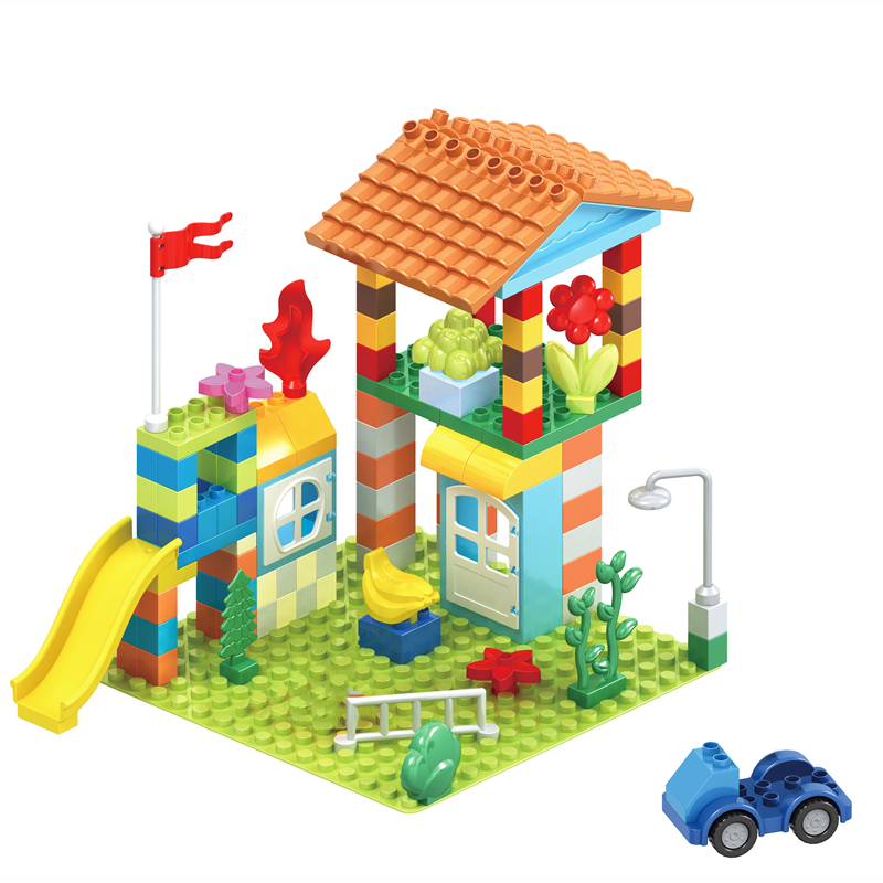 儿童方块积木塑料拼插大颗粒小房子组装益智 3-6周岁男女孩子玩具