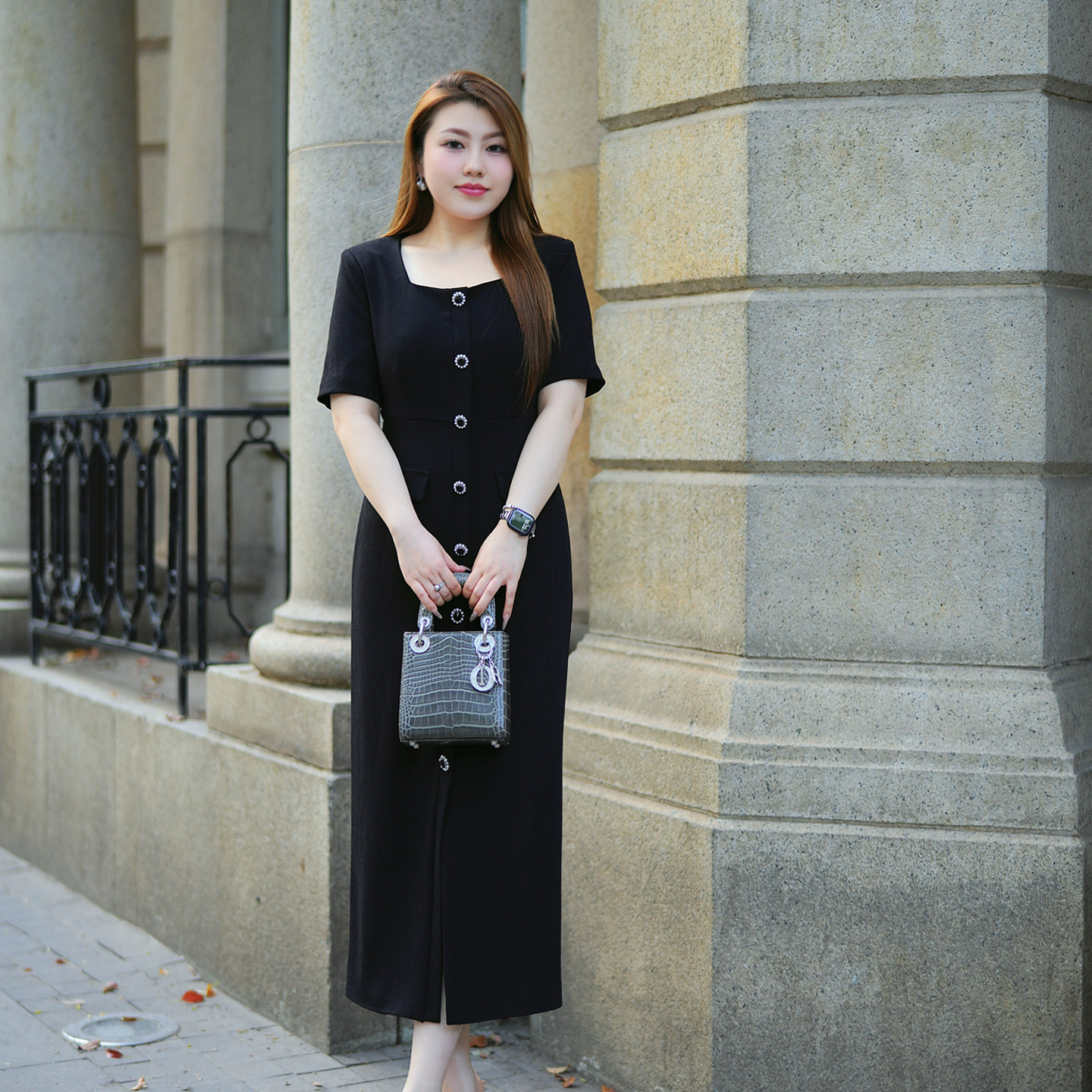 XYD71455法式纯色立体拼接优雅感显瘦高级感小众大码气质连衣裙