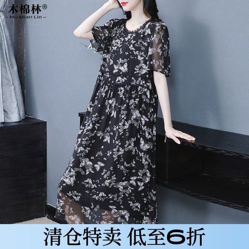 胖mm高级大码气质连衣裙夏装宽松遮肉时尚妈妈装减龄过膝中长裙子