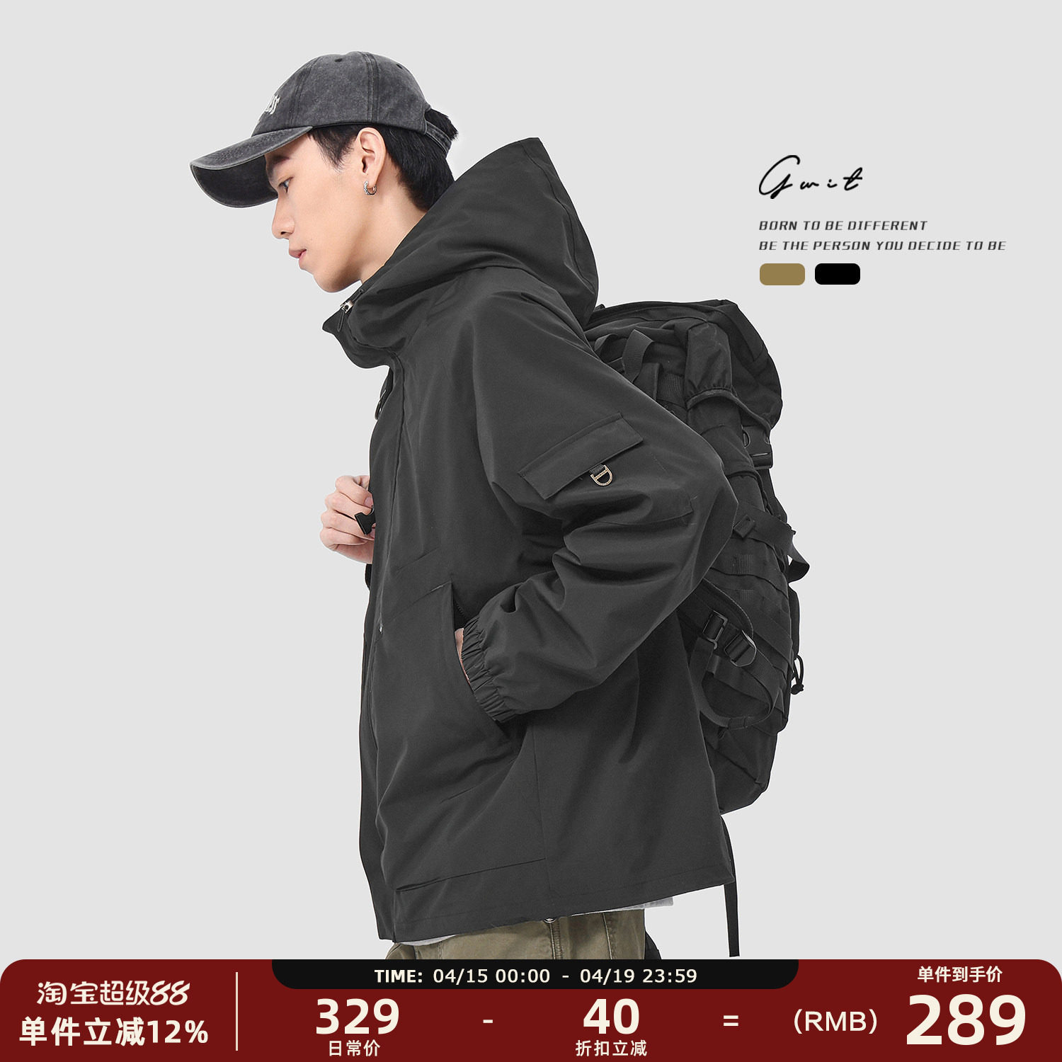 GWIT 美式硬壳三防户外登山冲锋衣春秋上衣潮牌夹克连帽外套男