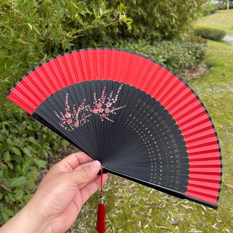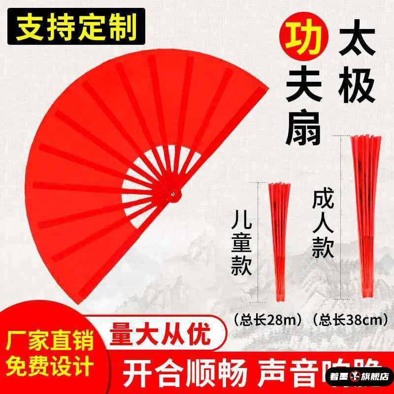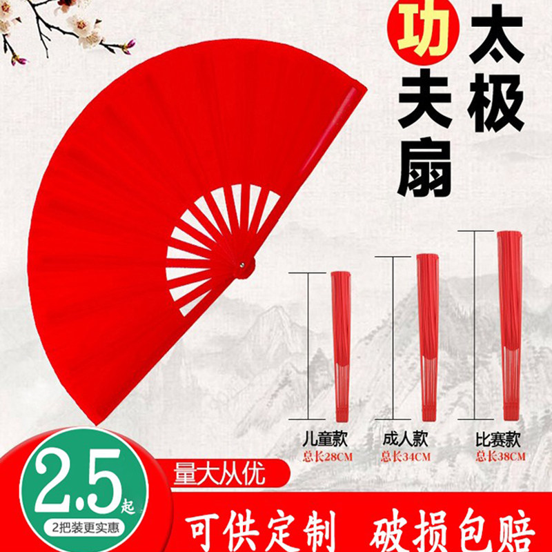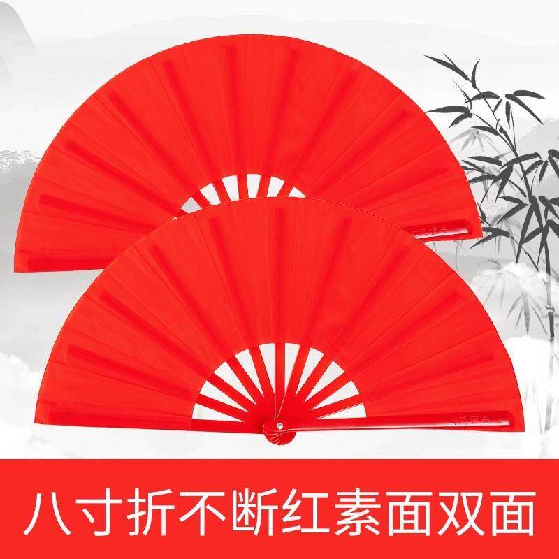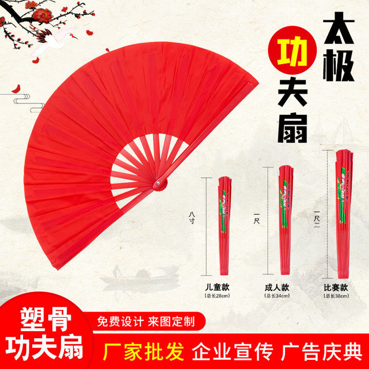 太极扇功夫扇8寸1尺塑料骨中国风小学生响扇武术舞蹈表演红色扇子