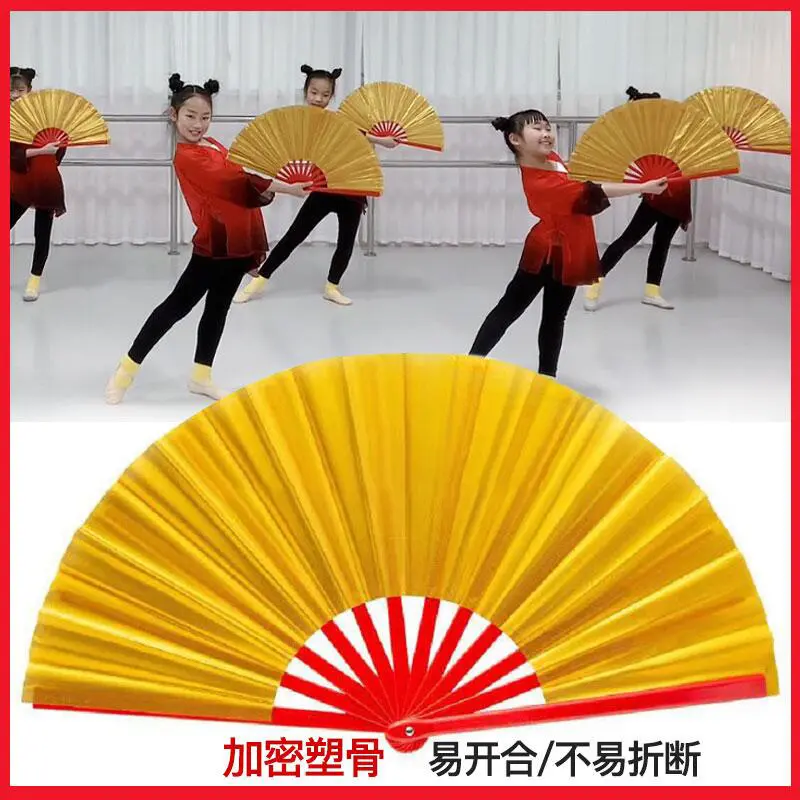 8寸儿童功夫扇子响扇表演扇塑料红骨有字素面金面太极扇单面舞蹈