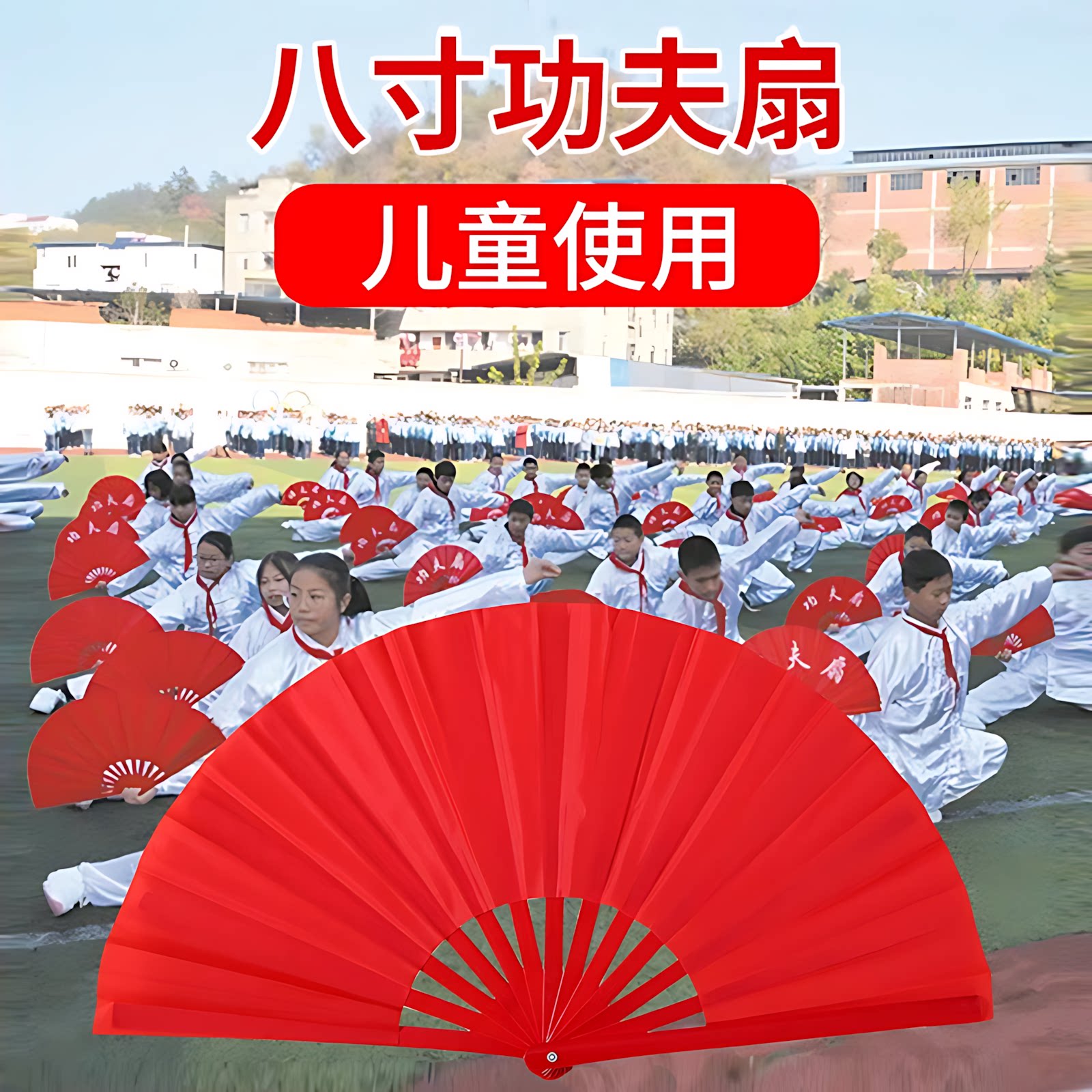 8寸儿童功夫扇子红色双面舞蹈表演武术中国说少年强太极响扇八寸