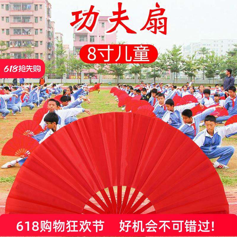 8寸儿童功夫扇子响扇红色双面舞蹈六一表演扇竹骨武术太极扇八寸