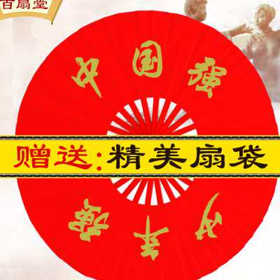 太极功夫扇双面8寸一尺一尺二金红色儿童舞蹈响扇子晨练武术表演