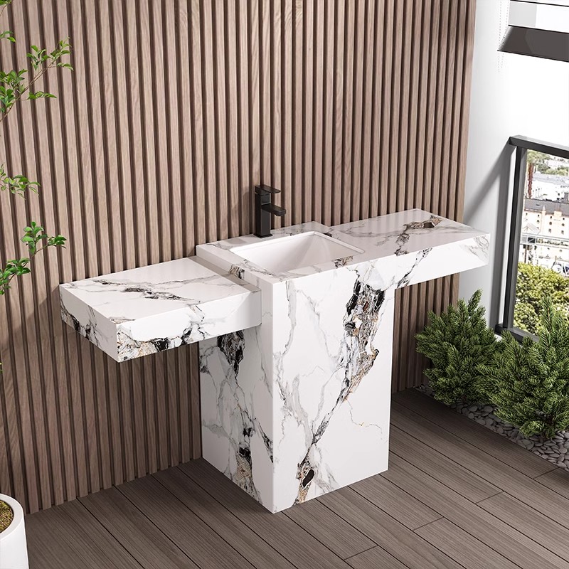 岩板立柱盆陶瓷落地式洗脸盆洗手台阳台户外庭院石材大理石洗手池