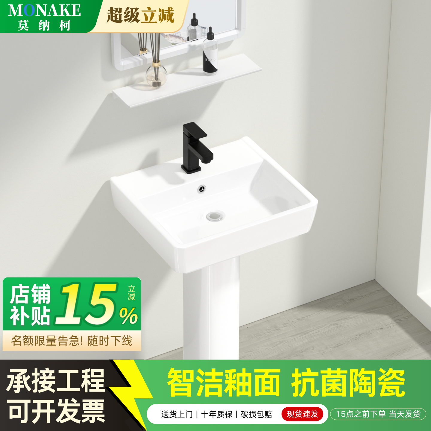 落地式岩板立柱盆延伸台面酒店吧ktv立柱式陶瓷一体洗手盆洗脸盆