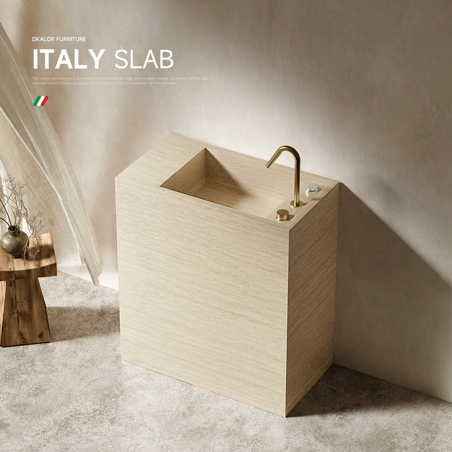 米黄洞石岩板立柱盆阳台落地式一体洗脸盆户外庭院别墅洗手池定制