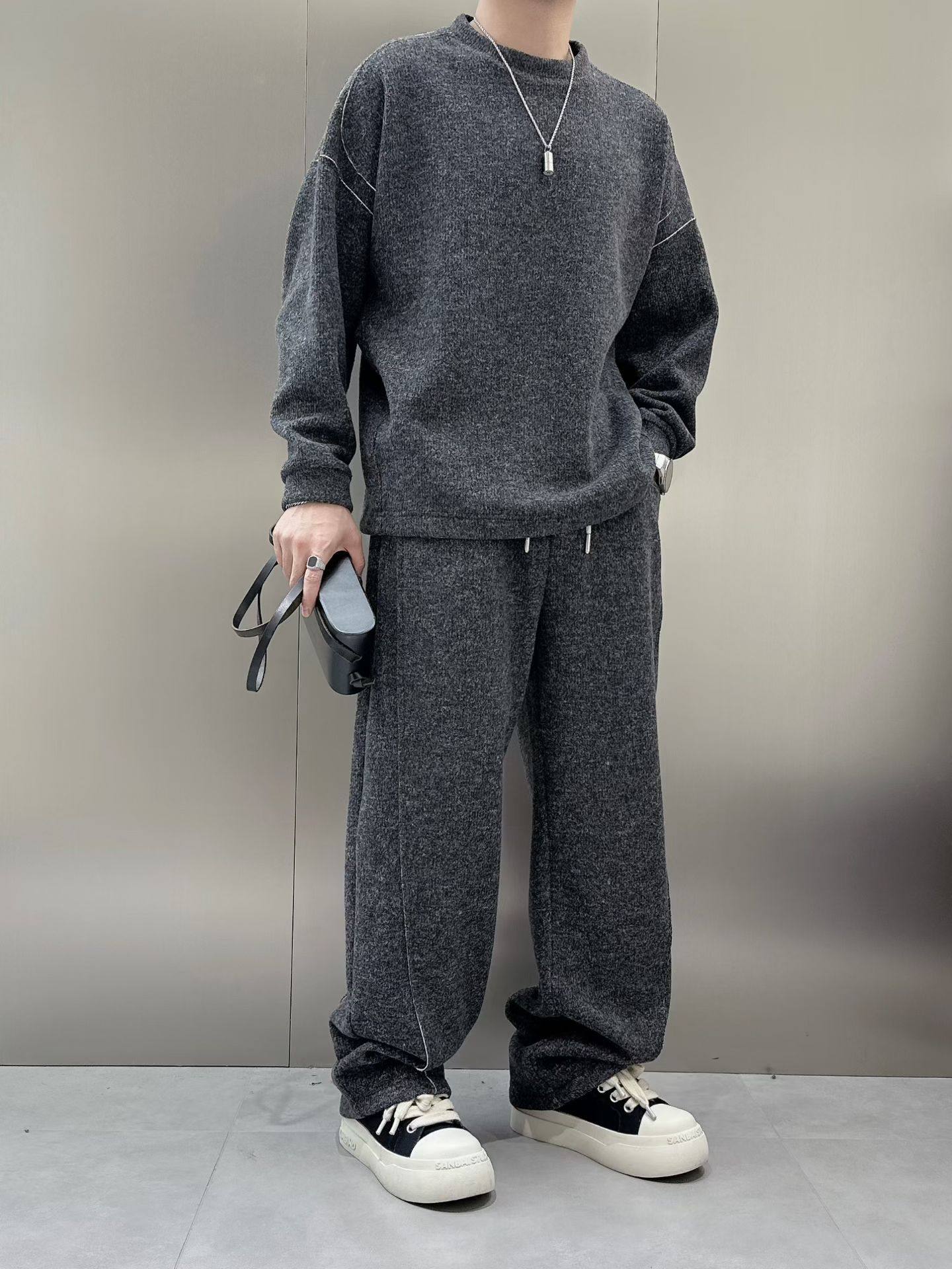 男士套装2025冬季潮牌宽松复古糯米绒轻奢休闲青年百搭加绒两件套