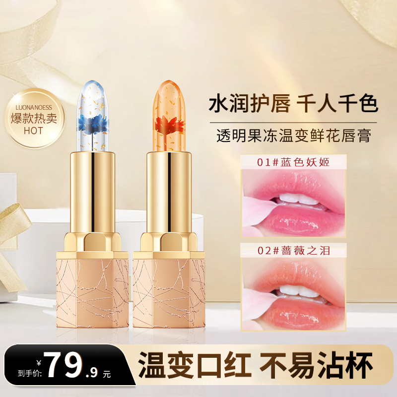花瓣果冻温变色口红不沾杯不掉色持久保湿滋润鲜花唇膏孕妇可用女