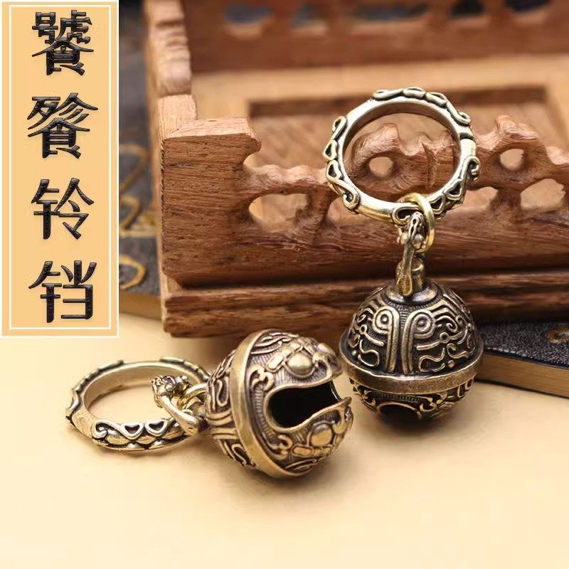 黄铜饕餮铃铛钥匙扣中国风会响铃铛挂件随身配饰汽车钥匙圈环礼物