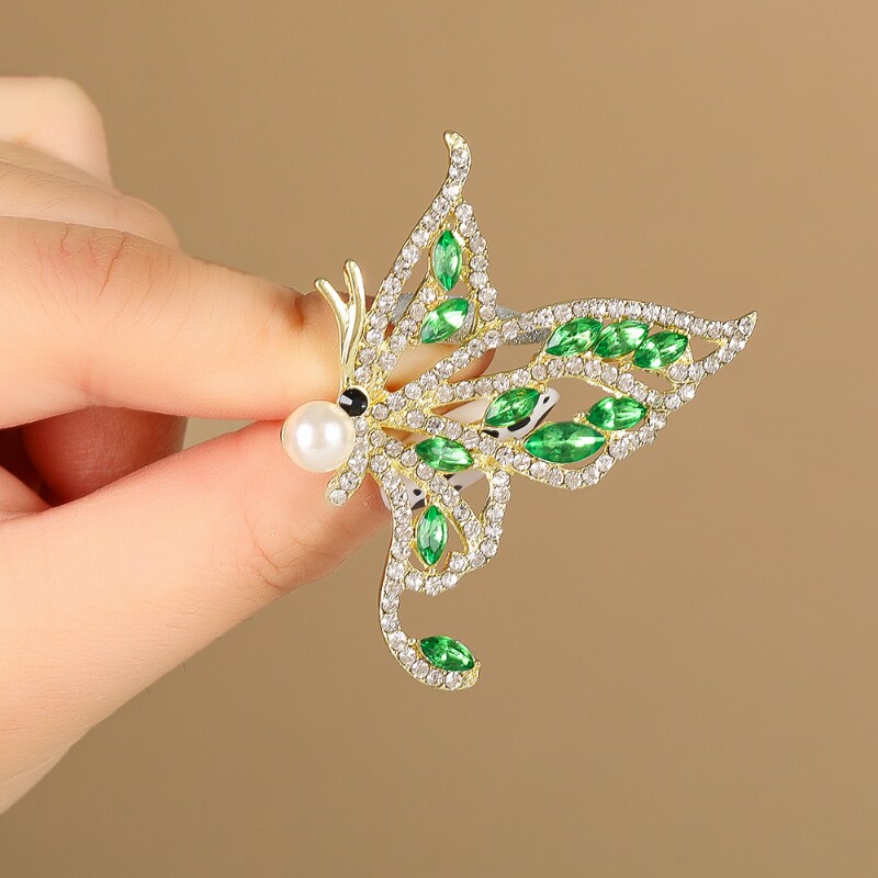 仿珍珠蝴蝶胸针女水钻精致小香风胸花别针配饰气质西装大衣防走光