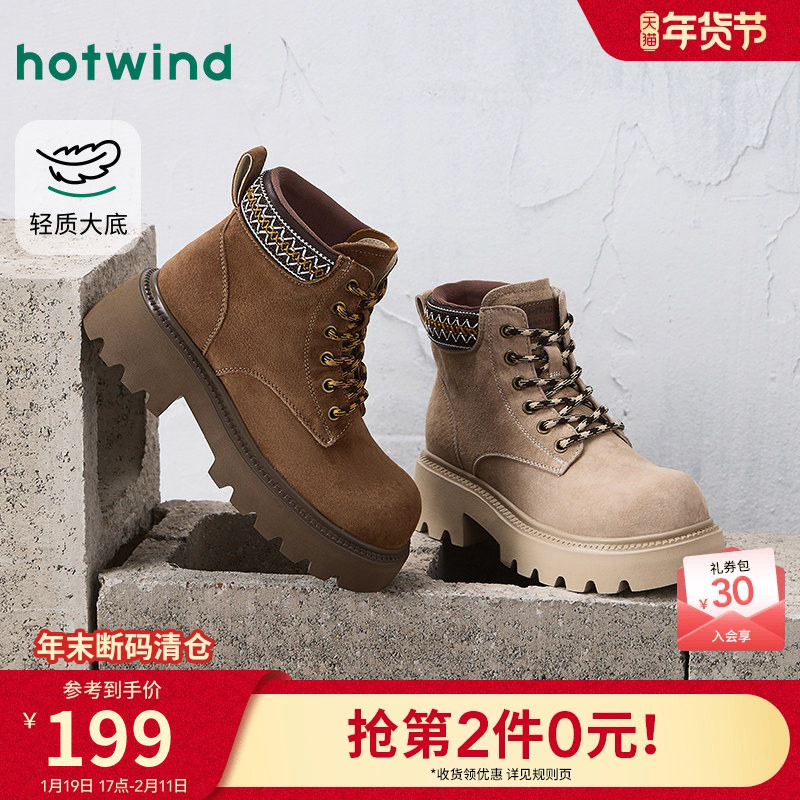 热风厚底工装靴女款2025年冬季新款英伦风马丁靴百搭大黄靴子女鞋