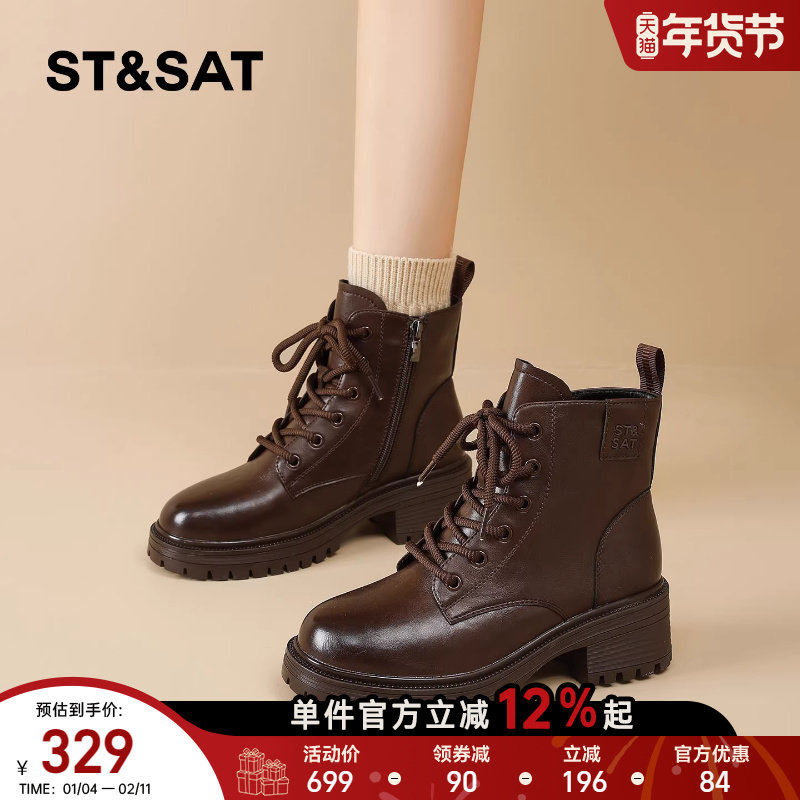 星期六厚底英伦风马丁靴女2025冬季新款皮带扣中筒靴子复古骑士靴