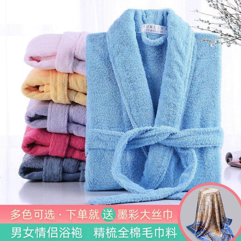 全棉毛巾浴袍女长款吸水速干纯棉睡袍男浴衣春秋浴袍情侣款家居袍