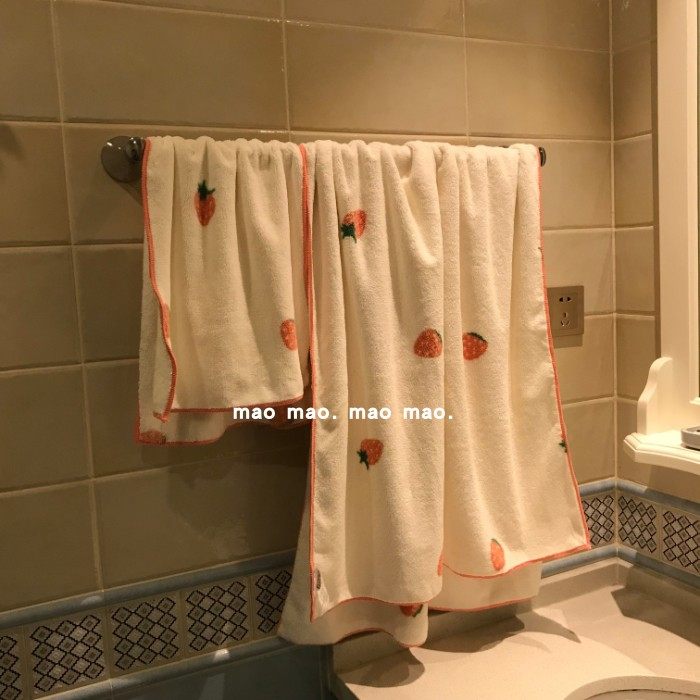 可爱草莓浴巾女家用裹巾柔软吸水速干毛巾浴袍浴室洗澡可穿可裹男