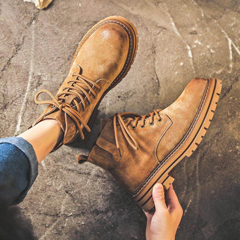 日系复古情侣马丁靴男真皮工装鞋英伦短靴厚底户外登山鞋沙漠靴男