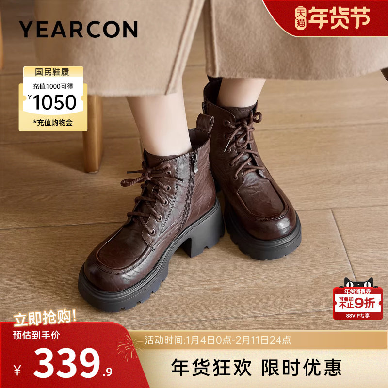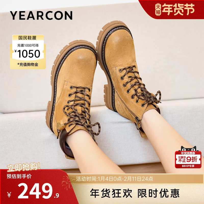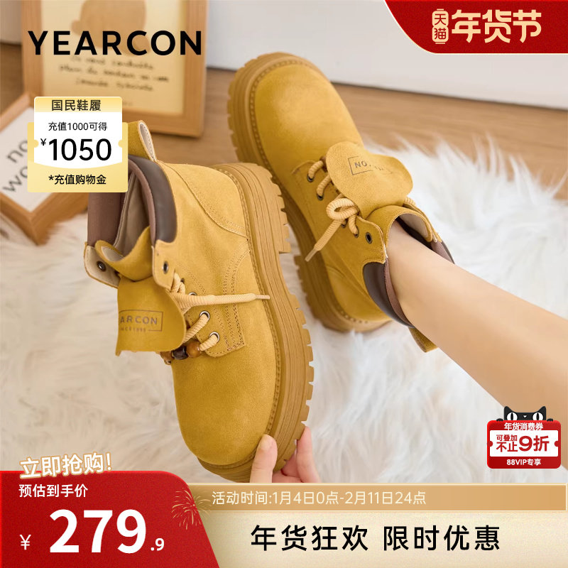 意尔康女鞋2025冬季马丁靴粗跟单靴英伦短靴厚底大黄靴沙漠工装靴