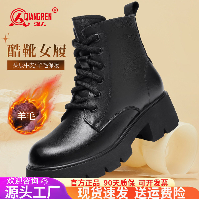 3515强人品牌正品女靴冬季保暖加绒马丁靴英伦短靴厚底羊毛靴软皮