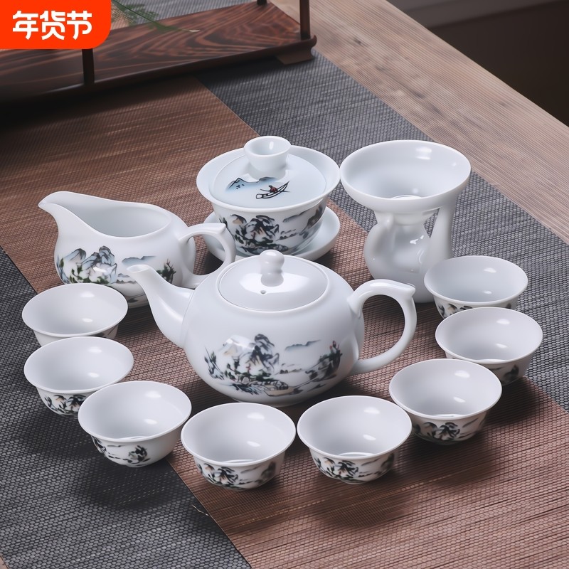 茶具套装青花陶瓷家用泡茶器功夫盖碗整套简约办公室会客茶杯特价